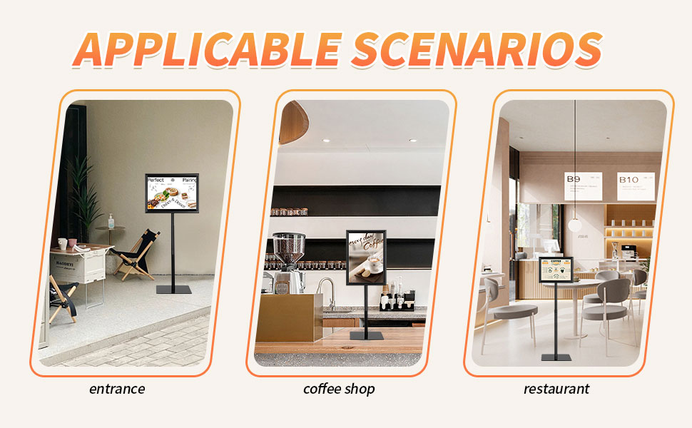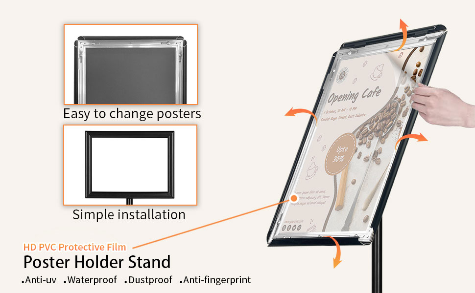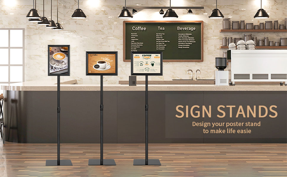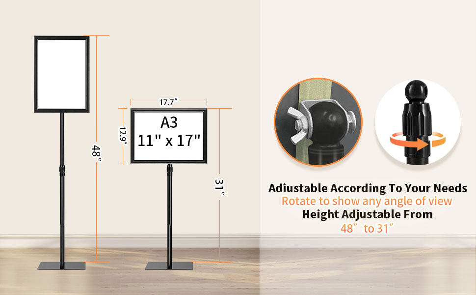 Adjustable Floor Sign Stand Heavy Duty Pedestal Sign Holder Stand, Poster Stand with Aluminum Snap Open Frame for 11x17 Inches , Both Vertical and Horizontal View Sign Displayed, Black