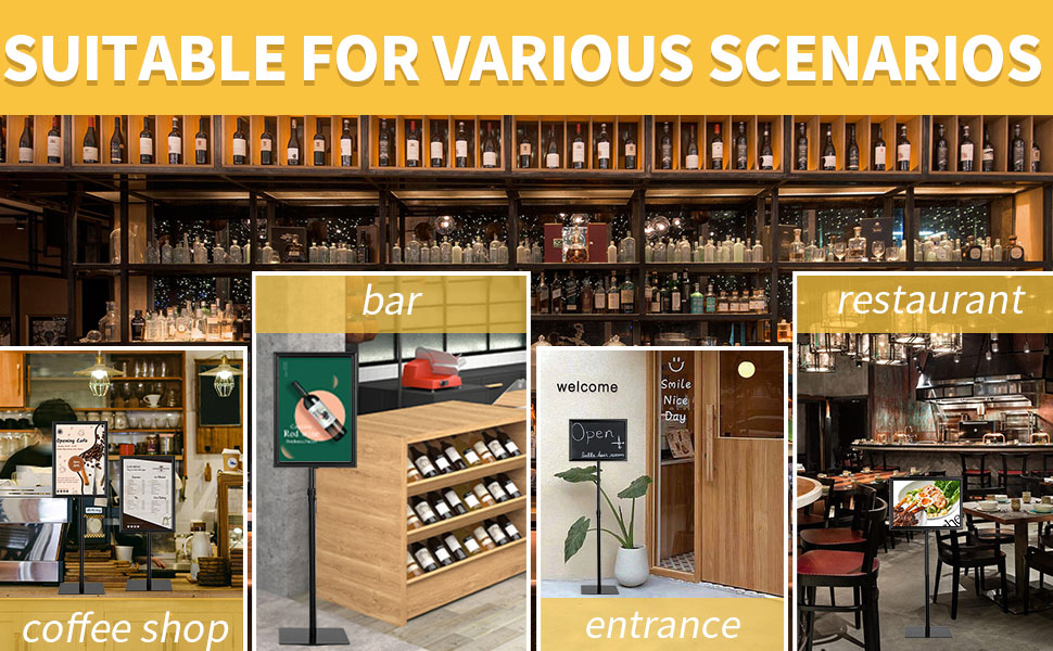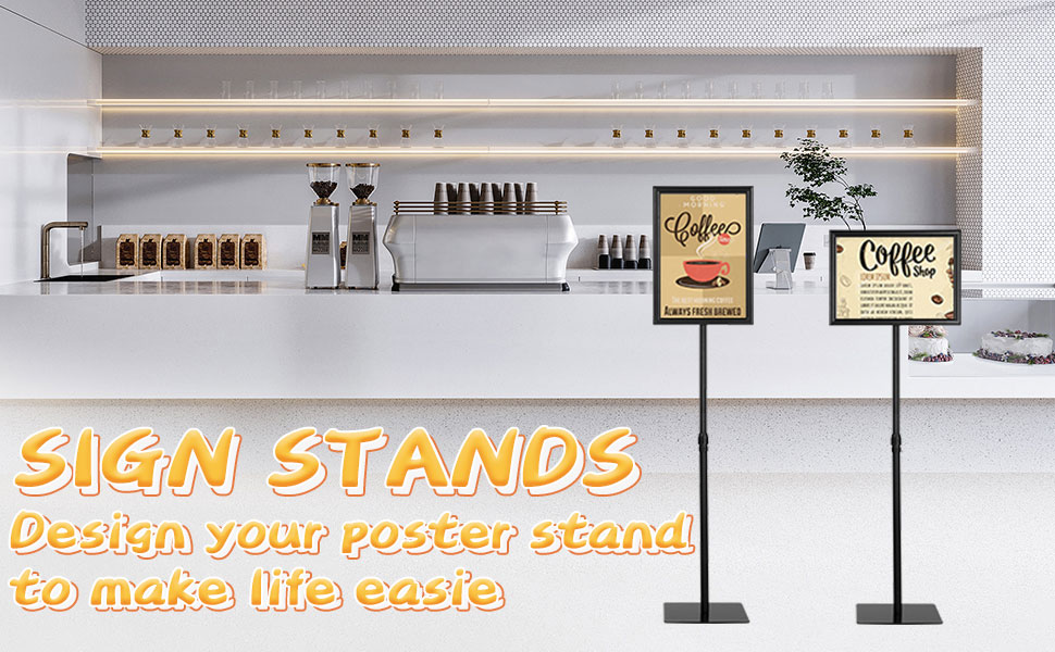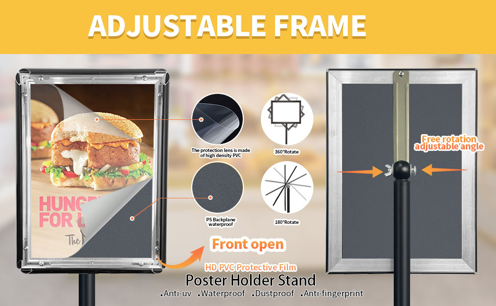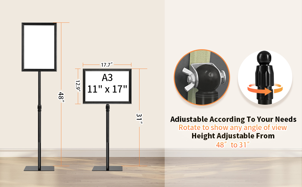 HYNAWIN Adjustable Floor Sign Stand Heavy Duty Pedestal Sign Holder Stand, Poster Stand with Aluminum Snap Open Frame for 8.5x11 Inches, Both Vertical and Horizontal View Sign Displayed, Black